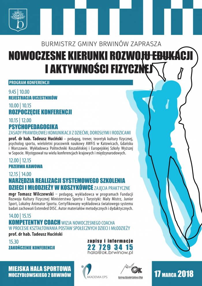 Gminny Ośrodek Kultury w Brwinowie organizuje konferencje i warsztaty pod hasłem „Nowoczesne kierunki rozwoju edukacji i aktywności fizycznej”. 17 marca tematem przewodnim będzie koszykówka, a 14 kwietnia – badminton.