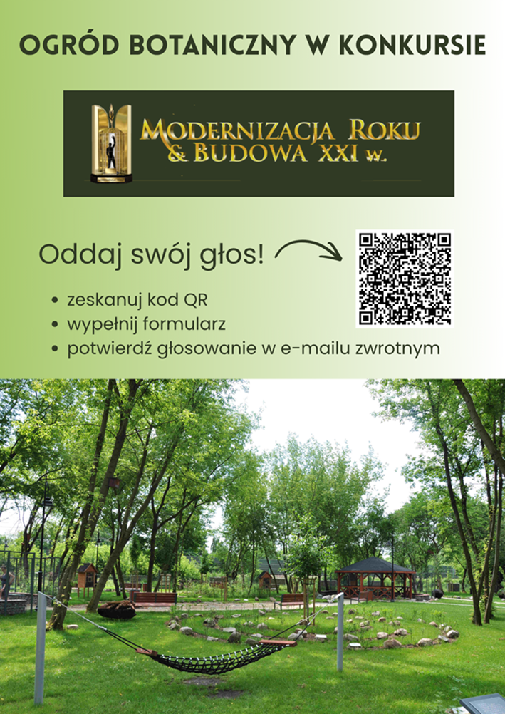 Brwinowski Ogród Botaniczny potrzebuje głosów internautów, aby być laureatem 30. edycji Ogólnopolskiego Konkursu „Modernizacja Roku & Budowa XXI w.”.