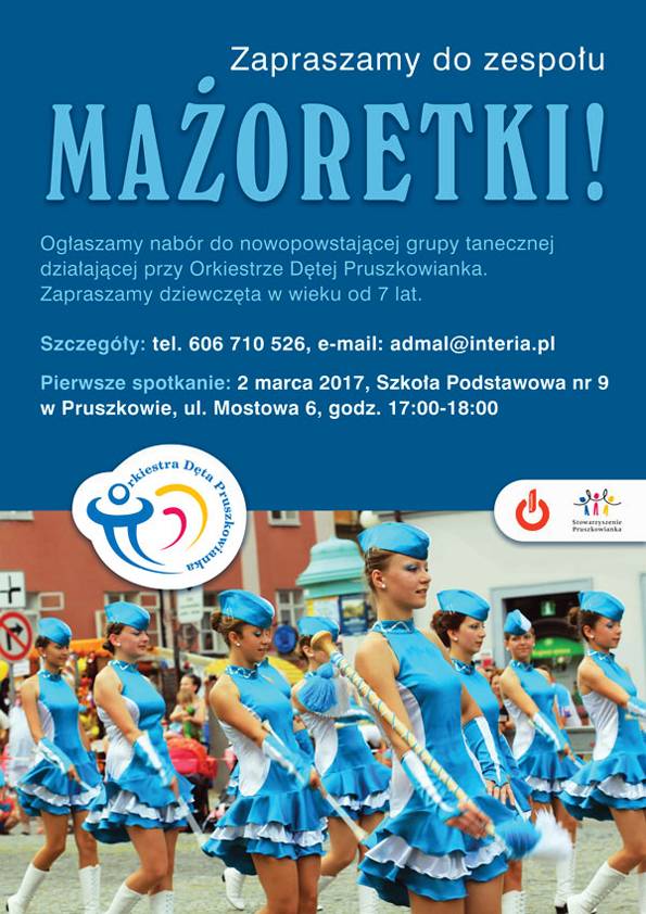Orkiestra Dęta "Pruszkowianka" działająca w naszym mieście od roku 2010 roku rozwija skrzydła. Dzięki dotacji z budżetu miasta Pruszkowa poszerza swoją ofertę. Oprócz stale prowadzonej nauki na instrumentach dętych i perkusyjnych (w tym także na zestawie perkusyjnym) przyszedł czas na powołanie zespołu mażoretek.