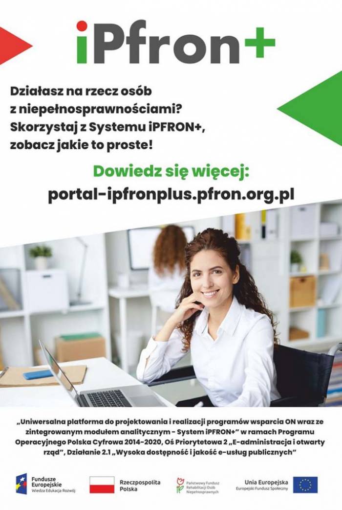 Projekt „Uniwersalna platforma do projektowania i realizacji programów wsparcia ON wraz ze zintegrowanym modułem analitycznym – System iPFRON+” w ramach Programu Operacyjnego Polska Cyfrowa 2014-2020, Oś Priorytetowa 2 „E-administracja i otwarty rząd”, Działanie 2.1 „Wysoka dostępność i jakość e-usług publicznych”.