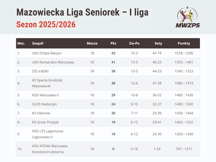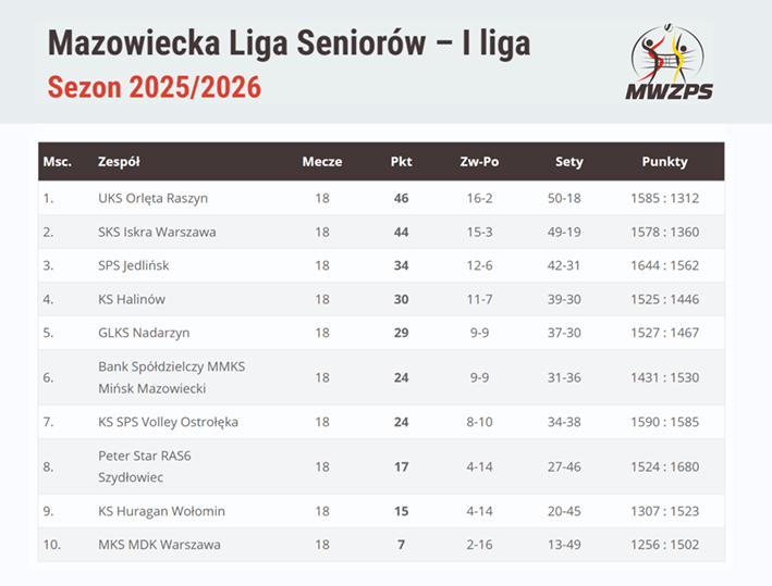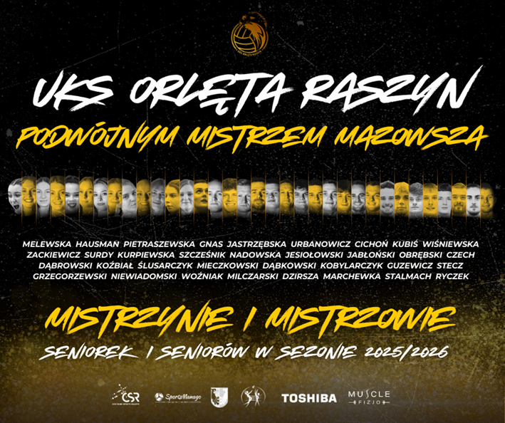 Zakończyły się zmagania w ramach I Ligi Mazowieckiej Seniorek i Seniorów (najwyższej klasy rozgrywkowej na Mazowszu). W sezonie 2025/2026 najlepsze na parkiecie okazały się zawodniczki i zawodnicy klubu UKS Orlęta Raszyn, którzy triumfowali w obu kategoriach. Kroniki mazowieckiej siatkówki nie pamiętają sytuacji, aby w ramach jednego klubu zdobyto dwa złote medale w najwyższej klasie rozgrywkowej.