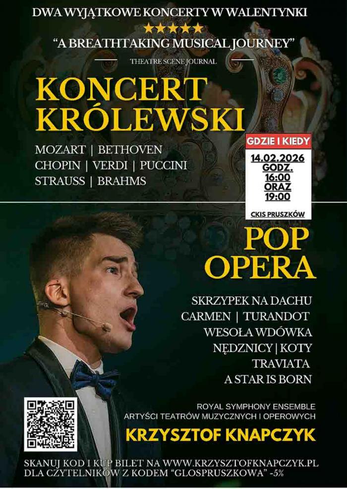∙ 16:00 – Koncert Królewski oraz ∙ 19:00 – Pop Opera