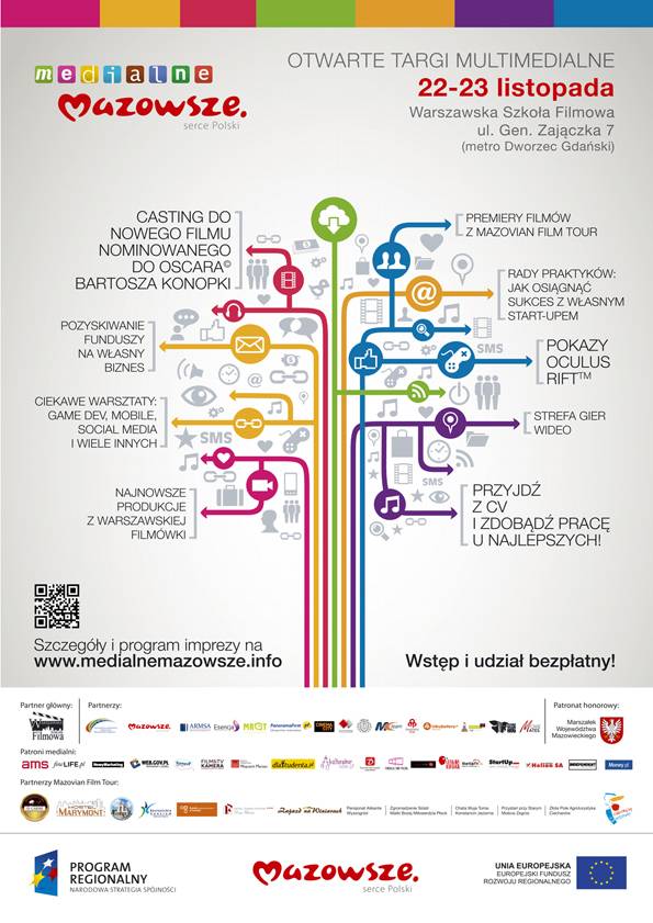 Targi Medialne Mazowsze - Warszawska Szkoła Filmowa, ul. gen. Zajączka 7 (metro: Dworzec Gdański) 22. listopada 2014 r. (sobota) godz. 10.00-19.00, 23. listopada 2014 r. (niedziela) godz. 10.00-17.00.