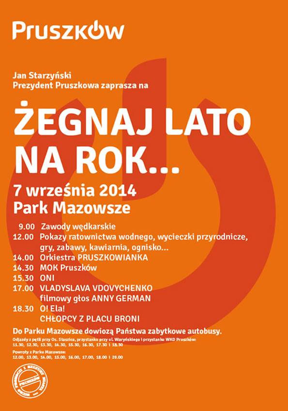 Powroty wszystkich autobusów z Parku Mazowsze do przystanków początkowych równocześnie: 12.00, 13.00, 14.00, 15.00, 16.00, 17.00, 18.00 oraz ok. 20.00 (po ostatnim koncercie).